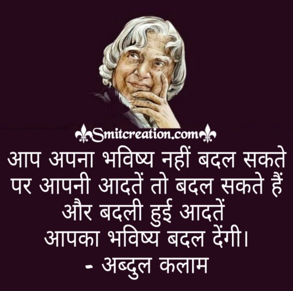 आप अपना भविष्य नहीं बदल सकते पर आपनी आदतें तो बदल सकते हैं और बदली हुई आदतें आपका भविष्य बदल देंगी।
