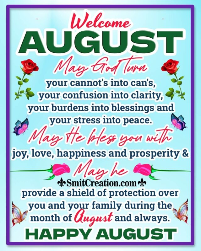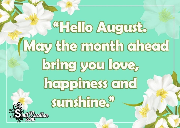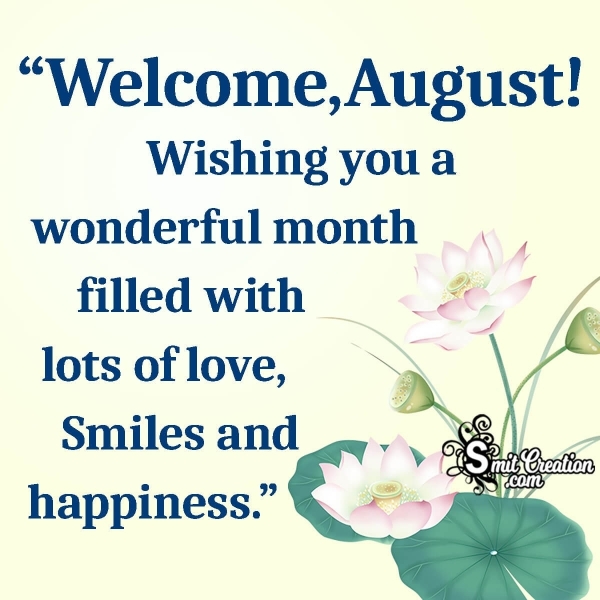 “Welcome,August! Wishing you a wonderful month filled with love and happiness.”