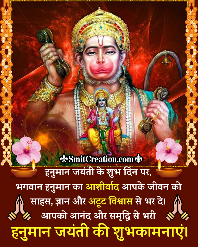 Download Image“हनुमान जयंती के पावन अवसर पर यही आशा है कि आप और आपके परिवार पर सदा मारुति का आशीर्वाद बना रहे…. आशा है आप बने बजरंगबली के जैसे बलवान और बुद्धिमान और संसार में हो आपका गुनगान… बोलो हनुमान जी की जय!!!”