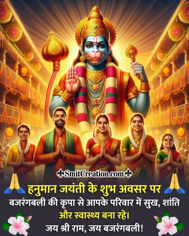 हनुमान जयंती के शुभ अवसर पर बजरंगबली की कृपा से आपके परिवार में सुख, शांति और स्वास्थ्य बना रहे।