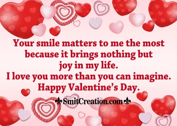 Your smile matters to me the most because it brings nothing but joy in my life. I love you more than you can imagine. Happy Valentine’s Day.