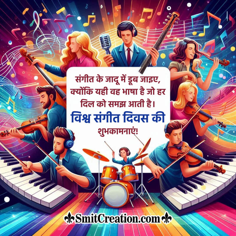 संगीत के जादू में डूब जाइए, क्योंकि यही वह भाषा है जो हर दिल को समझ आती है। विश्व संगीत दिवस की शुभकामनाएं!
