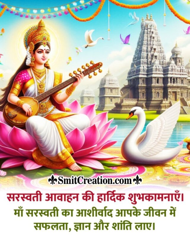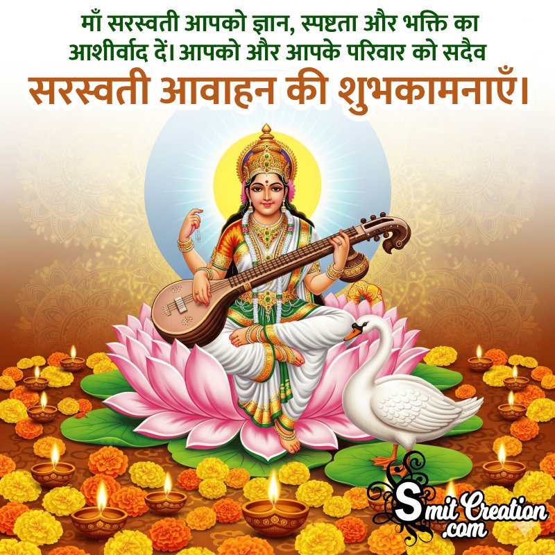 The first day of Saraswati Puja during Navratri Puja is known as Saraswati Avahan. Avahan means invocation of Goddess Saraswati.