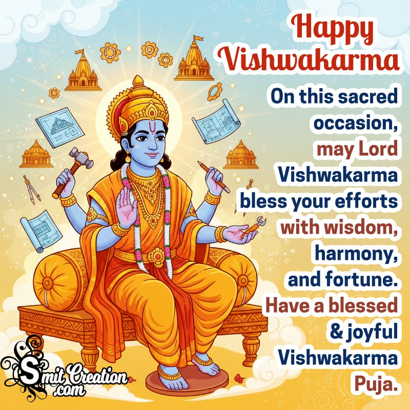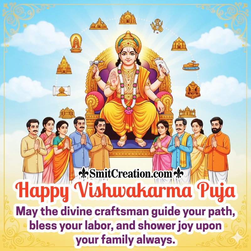 Vishwakarma Day also known as Vishwakarma Jayanti or Vishwakarma Puja is a day of celebration for Vishwakarma, a Hindu god, the divine architect, and one of the fourteen precious things born of the Samudra manthan.