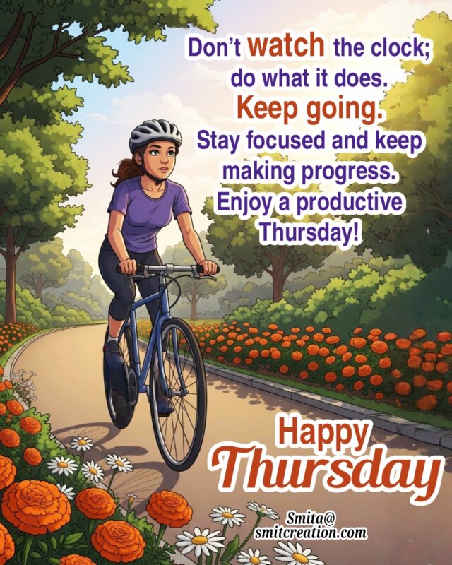Don’t watch the clock; do what it does. Keep going. Stay focused and keep making progress. Enjoy a productive Thursday!