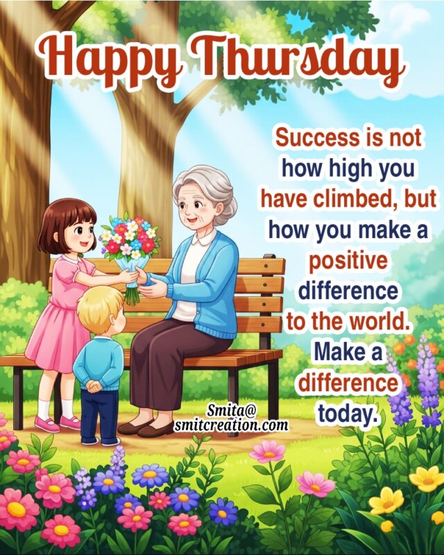 Success is not how high you have climbed, but how you make a positive difference to the world. Make a difference today. Have a meaningful Thursday!