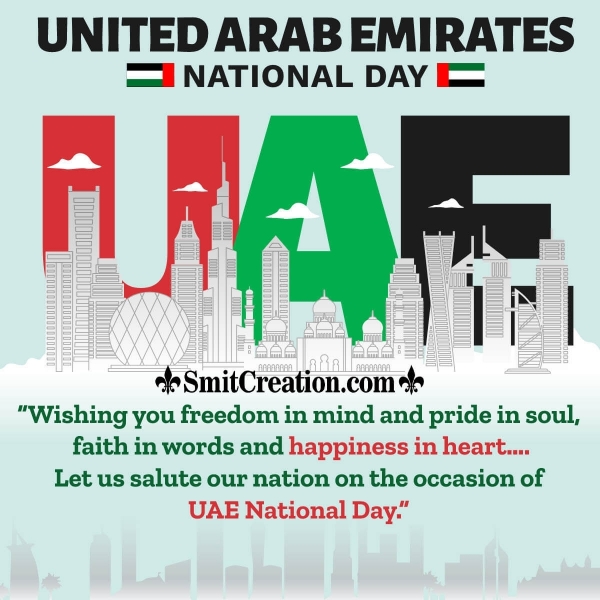 “Wishing you freedom in mind and pride in soul, faith in words and happiness in heart…. Let us salute our nation on the occasion of UAE National Day.”